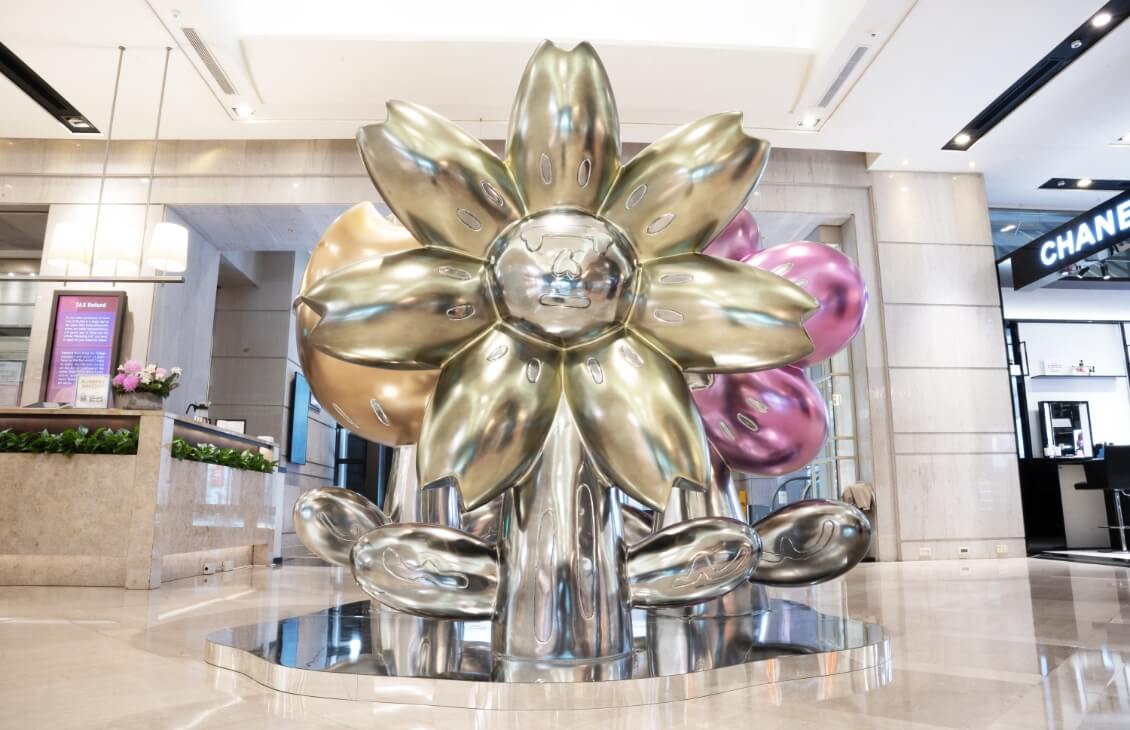 新光三越 2022 年 10 月起邀請台灣當代藝術家 Abei 創作展出,透過藝術家 Abei 筆下知名角色 HUA HUA 與 Maskboy,帶來溫暖療癒的大型立體裝置,以純淨光澤反射周遭景物,象徵所有美好的事物都散發著光芒,一起匯集夢想,迎向溫暖正向的新希望。耗時 6 個月完成全新創作、規劃、與布置,並結合 Q2 skm points 「HUA 樣生活集點送」,點數兑換周邊贈品。