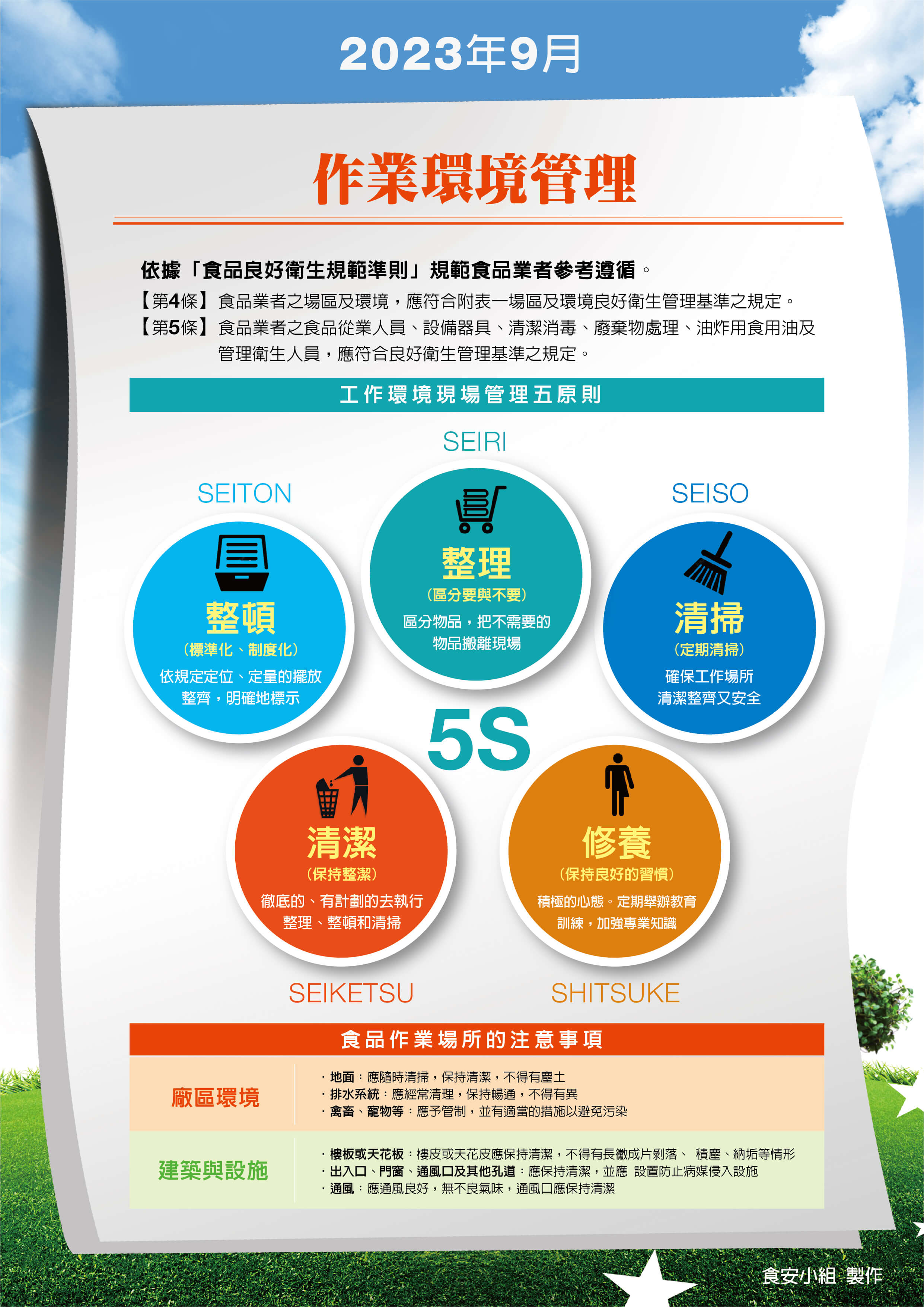 | 內部稽核 | 每月一次 | 現場衛生環境 |