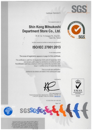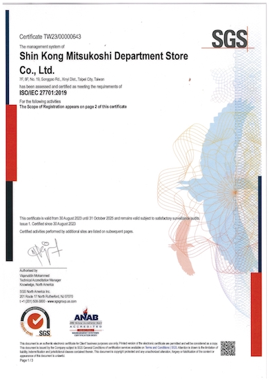 新光三越十分重視客戶的權益,全力打造顧客可以信賴的安心購物環境,繼導入ISO 27001資訊安全管理系統驗證後,2022年則進一步為導入ISO 27701個人資料隱私資訊管理系統進行準備作業,包含執行個人資料盤點、風險評鑑教育訓練等,已於2023年取得ISO 27701之認證,藉以更加精進並徹底實踐客戶隱私、個人資訊安全之維護。